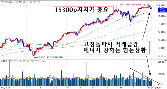 15300p지지가 나와야 추세가 유지된다. 붕괴될 경우 투심이 흔들릴 수도 있다.