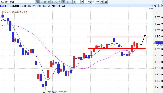<거래소는 1,905포인트 주초반 하향만 없으면 이번주 1,940포인트 돌파가 가능한 패턴>