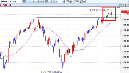 <유로존 경기 회복을 바탕으로 독일과 프랑스 증시는 우상향 기조를 유지하고 있다>