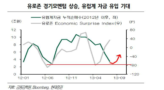 유로존 경기 회복은 중국 등에도 상당히 중요한 사항이다. 금요일은 주문단위 실수로 의미가 퇴색했어도 매도가 아닌 매수주문였다는 점도 한편으로는 눈여겨볼 부분이다. 아울러 국내증시 수급 구도에서도 올해 들어 매도가 지속된 유럽계 자금의 매수 유입 전환도 기대해 볼 수 있다.