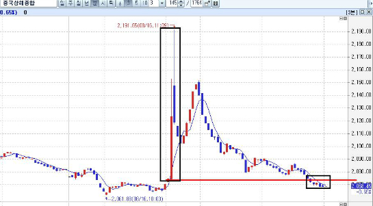중국증시의 주문실수 여파는 금요일 당일로 마무리되었다고 보여진다. 매도를 매수로 잘못 주문넣은게 아니고 3,000만주 매수주문을 30억주 매수주문으로 실수한 것이기 때문에 장중 급등이 하락으로 마감되었다는 점에서 당일로 주문실수 영향력은 해소된 것으로 판단하는 것이다.