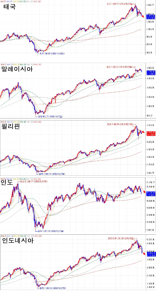 인도와 인도네이사는 해외자본 의존도가 높은 국가이기 때문에 출구전략이 시행될 경우 가장 큰 영향을 받을 것이며 이것이 외환위기로 번질 것이라는 우려가 시장에서 악재로 작용했다.