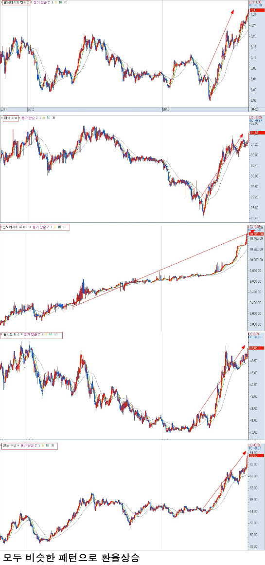 신 신흥국으로 불리는 5개국의 환율차트