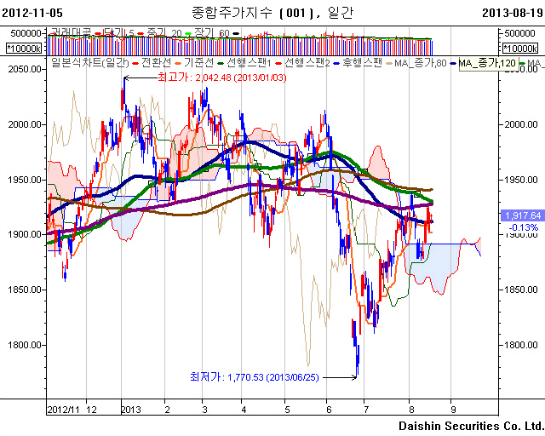 2013년8월19일 오늘의 장세