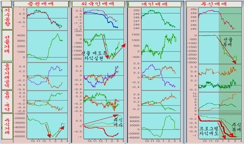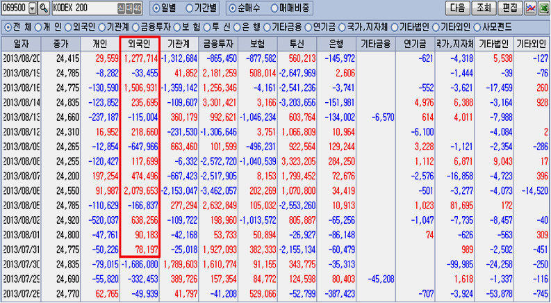 투신의 투매와 외국인의 주식 매수.