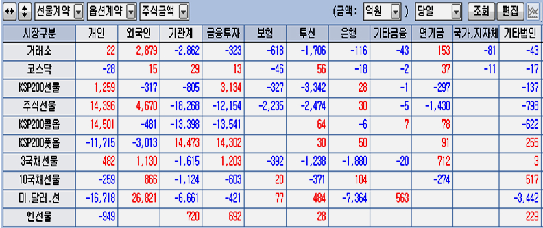 대신 경기 회복과 함께 주가가 상승할 때 가격이 하락하는 채권은 적극적으로 비중을 축소하고 있다. 경기가 어려워질 것 같으면 안전 자산인 채권을 사서 늘리고 위험자산인 주식을 팔아 비중을 낮추어야 하지만, 지금은 안전자산인 채권은 공격적으로 선물을 매도하여 채권 매도를 예약해 두고, 대신 주식과 선물과 ETF와 투기성이 강한 옵션까지 공격적으로 사들이고 있다.