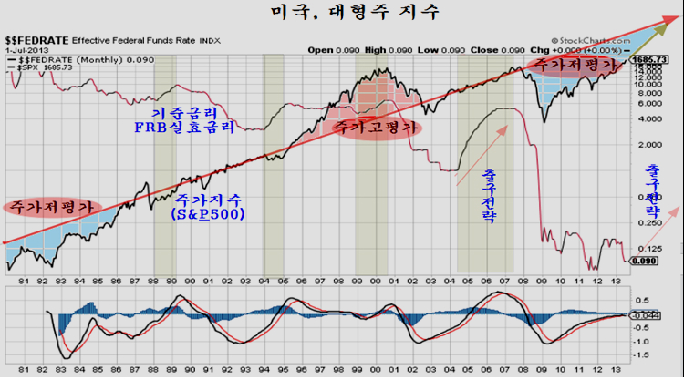 출구전략도 마치 주가가 신흥국에서 가출이라도 해버리는 것처럼 잔뜩 공포감을 연결시켜 심리적인 무기로 쓰려 하지만, 과거 경기 침체 후 출구전략 ( 금리인상 ) 의 시기를 보면 출구전략이 주가의 가출이 아니라 상승 추세가 이어짐을 알 수 있다.