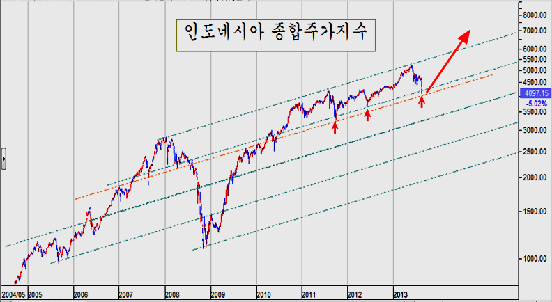 따라서 위기론 거론되고 있는 나라들은 높은 환율과 낮은 주가로 달럴로 환산한 주가가 대단히 값싼 가격이 되어 있어 향후 5년중 최고의 투가 기회가 된다.