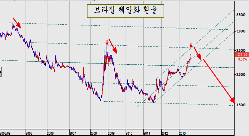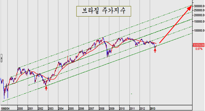 이미 원유가격과 건화물 운임, 철강과 금속 등 원자재 가격이 5년 하락 저항을 돌파하여 상승 추세로 움직임으로써, 이 원자재를 들여다가 가공하여 수출하는 이머징 국가의 경기 회복이 시작되었음을 시사하고 있다.
