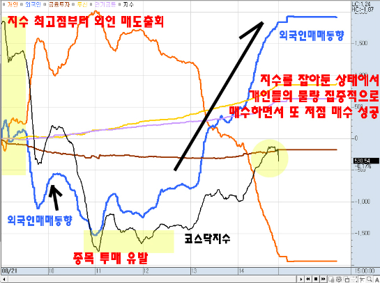 특히 코스닥 시장에는 소름 끼치는 지수 핸들링을 보여주면서 참 잔인할 정도로 개인들의 투매 물량들을 유도해 저점에서 받아 챙기는 모습이었다.