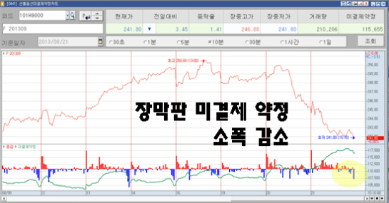 오늘 장중 미결제 약정도 9000계약을 넘어서면서 실제 새롭게 매도포지션을 잡아가는지 우려가 됐었다. 장이 끝나고 미결제 약정은 7000계약 정도로 줄긴 했지만, 여전히 부담스러운 상태다.