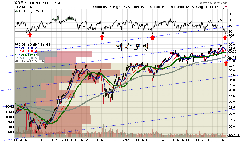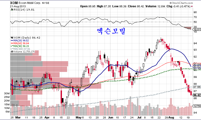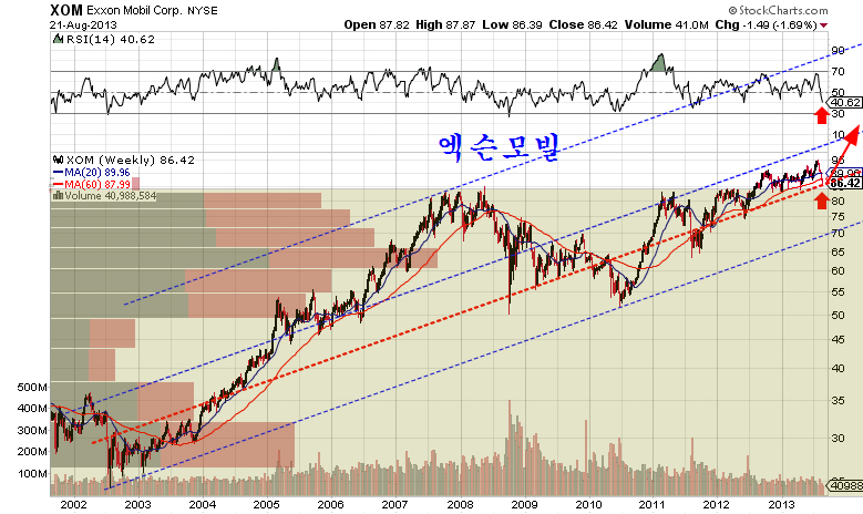 엑슨모빌 9일 연속 하락으로 지난주 옵션 만기를 마친 뉴욕 종합주가지수의 상승이 지연되고 있으나 엑슨모빌이 과매도권에 진입하면서 중기 상승 추세 임박