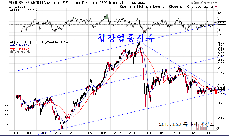 이런 업종의 상승은 그간 장기 침체이 있던 산업재 경기가 회복 국면으로 전환되고 있음을 의미한다. 주택과 공장, 사회간접자본, 조선과 항공기, 발전소 등 핵심 산업의 성장이 시작됨을 의미한다.
