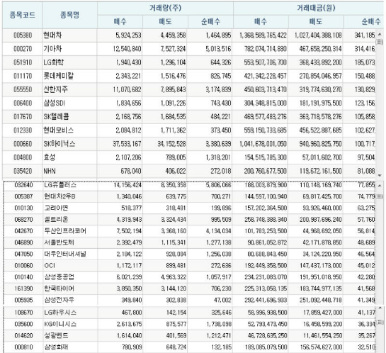 최근 한달간 외국인 순매수 상위 종목(7/26-8/26)