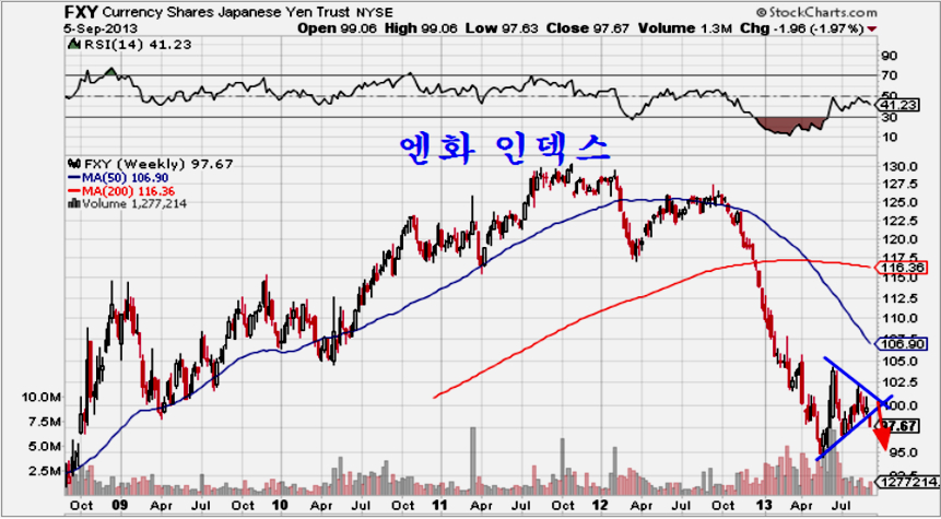 이미 2011년 이후의 세계 경기 둔화 과정이 회복으로 전환되고 있는 만큼, 추세는 저항을 돌파하여 채널의 맨 끝을 향해 상승이 진행되기 쉽다.