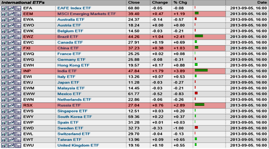 뉴욕시장에서 강세를 보인 것은 미국의 자산이 아니라, 인도, 브라질, 러시아, 중국의 소위 브릭스의 주식 펀드 (ETF)이다. 이들은 그간 선진국에 비해 상대적으로 하락이 커서 저평가가 심화된 반면, 세계 제조업 경기가 회복할 때 이익이 가장 민감하게 변한다.