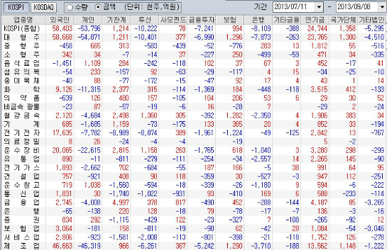 대한민국 증시의 구원투수 연기금 또한 꾸준한 매수세를 유지해 주고 있으며 7조원의 순매수를 보여주고 있는 상황이다.