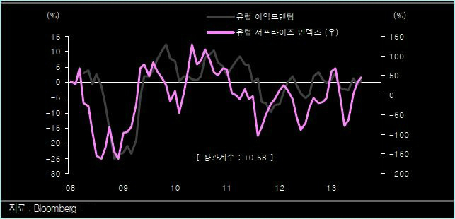 현재 유럽의 경기지표예상치 상회비율은 큰 반등세를 보이고 있는데