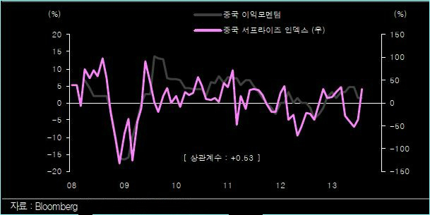그로인해 유럽으로의 수출비중이 높은 중국의 경우는 유럽의 경기개선에 예상 경기 지표가 큰폭 반등하고 있고
