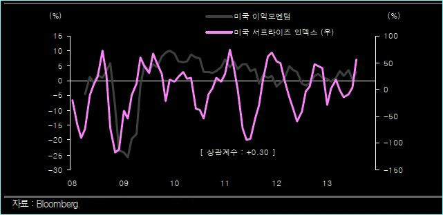 미국과 중국의 경기 지표에 크게 의존하는 국내기업의 특성상 현재의 코스피의 강세가 반영되고 있다 판단된다 그러나 경기 지표 예상전망치가 상향조정되고 있고 이러한 전망치가 시장에 반영되고 있는 이와중에 우리는 투자자로서 위험에 대한 관리상 또다른 이면을 살펴보지 않을수가 없다
