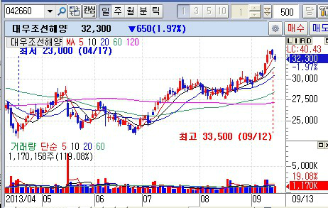필자는 그 동안 지속적으로 전기.전자/자동차/조선업 쪽으로의 관심을 보여주었으나 만기일 밤 무료방송을 통하여 조선업종은 STOP의견을 제시한 바 있다. 정회원방에서도 조선업종의 분할 매도 의견을 제시한 바 있다.