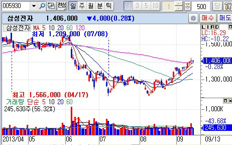 코스닥 시장의 랠리가 진행 되어진 다면 이들을 빼놓을 순 없을 것이다. 실제 실적대비 현저히 저 평가된 종목들이 즐비하기만 하다. 지난 6월 삼성전자의 몰락으로 함께 낭떠러지까지 떨어진 종목들이 넘쳐나고 있지만 우려가 지나친 면이 있다 할 수 있을 것이다. 최근 애플이 저가형 아이폰을 출시하였지만 그 가격대가 기가 막힐 노릇이다. 어차피 스마트폰의 2013년 마켓 타켓은 중국을 비롯한 동남아 신흥국들이다. 잘못된 가격 정책으로 애플의 고전은 계속 되어지리라 보여진다. 선진시장을 겨냥한 갤럭시 노트3의 판매량 역시 삼성전자측에서 자신만만하고 있는 부분이다. 하반기 IT부품주들의 반격을 기대해 보셔도 좋을 것이다.