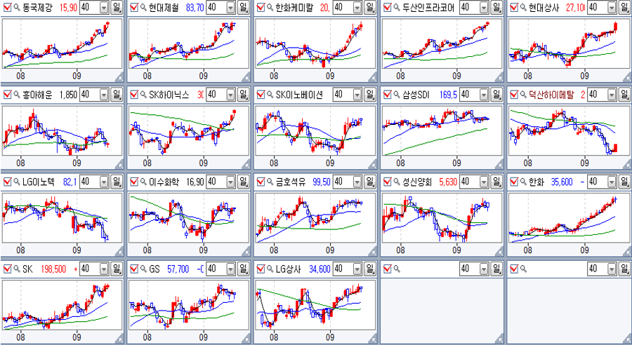 주도세력에 대해서는 두말할 나위 없이 외국인이다. 따라서 지금은 외국인이 매집했거나 매집하는 기업들이 핵심이다. 주로 대형주이며 우량 중형주도 이의 대상이 된다. 소형주나 개별주는 개인이 주도적 세력으로 부상할 때 탄력을 받는다. 따라서 외국인이 좋아하는 좋은 기업에 관심을 두는 것이 중요하다.