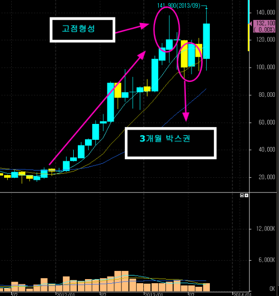 고점신호에도 또 다시 급등 파동을 타면서 7,8월달 오히려 급등세를 시현하였다. 의료용