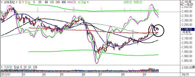 그러나 현재 차트내 검정원을 살펴보면 중국증시의 하락이 이해될법하다