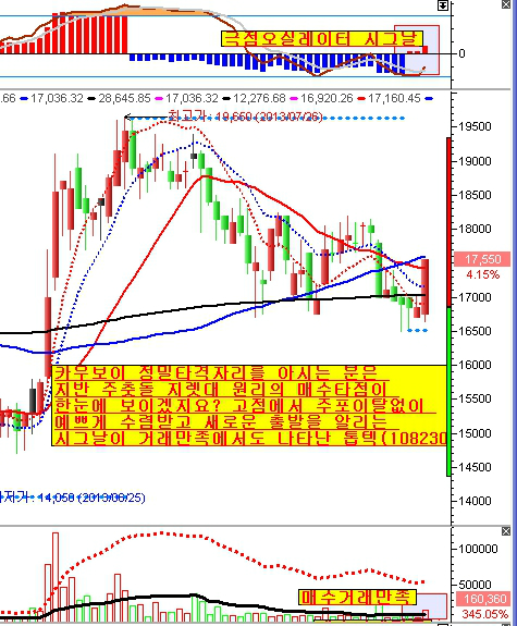 카우보이만의 독문절기 조건검색에서 지반 주춧돌 지렛대 원리로 정밀타격 자리를 신호챠트로서 크로스 채킹한 종목 소개드립니다 이런 종목은 직전저점(조정파동의 끝자리)이 이탈한다면 작은 손실로 손절이 가능 한 종목이니 많은 수익 내시길 바라며