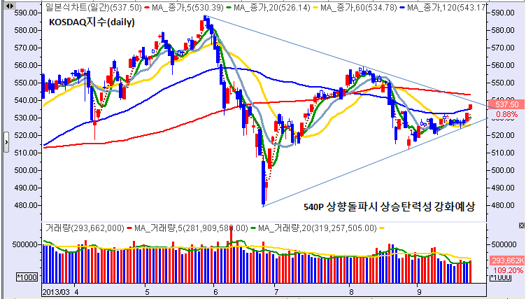 지난 분석글에서도 필자(수퍼리치)가 이미 의견 드린바 있지만 코스닥시장이 유가증권시장 보다 상승폭이 상대적으로 작았으므로 이후 지수의 상승 여력이 유가증권 시장보다는 크다고 볼수 있겠다.