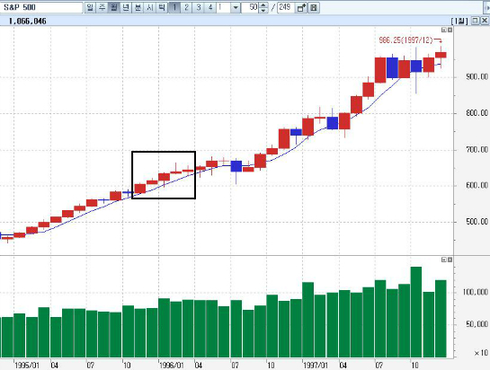 미국의 예산을 둘러싼 현재의 치킨게임이 과거에도 존재했다. 지난 1995년 11월~1996년 3월이 미국 연방정부가 폐쇄되었던 구간이다. 그러나 이 구간 S&P 500 지수는 오히려 10%가 상승한바 있다. 연방정부 폐쇄라는 최악의 상황였지만 조만간 이상이 해결될 것이란 기대감이 동 기간 오히려 작용되었기 때문이다.
