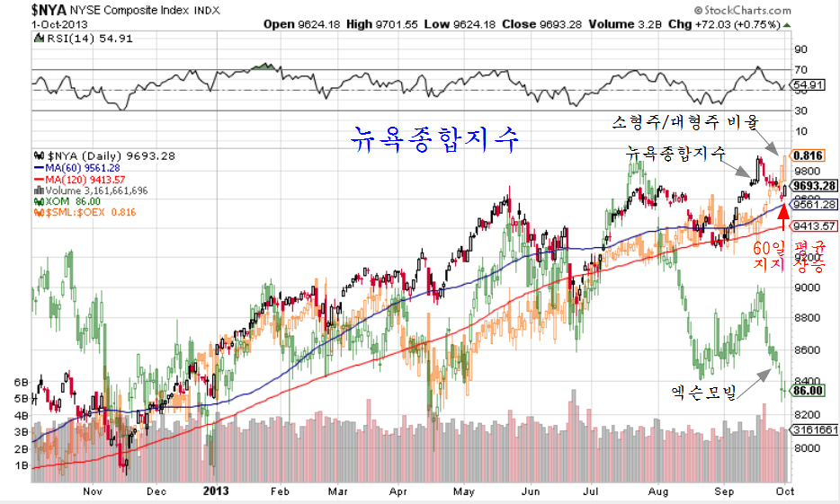 지난 9월 선물 옵션 만기 이후 뉴욕시장이 조정을 이어가면서, 여기에 연방정부 예산협상과 셧다운 리스크를 결부시켜 왔다. 그러나 뉴욕 시장은 파생상품과 관련한 변동이 큰 듯, 대형주 위주로 지수만 조정을 거쳤을 뿐 시장 자체는 활발한 상승을 진행해 왔다.