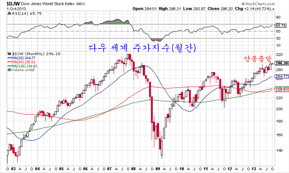 첫날 조정으로 시작했던 다우 세계 지수도 이어 상승이 진행되며 전약 출발 후 양봉을 만들었다. 9월에 위로 꼬리를 만들며 상승에 대한 이격 부담을 줄인 만큼 10월에는 비교적 쉽게 상승이 진행되며 양봉을 키워갈 수 있다.