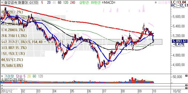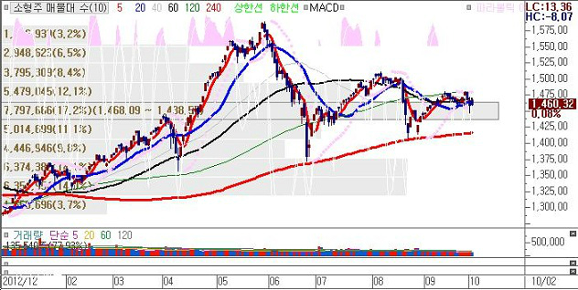 아직까지 많이 남아있는 미국 디폴트 시한까지 민주,공화당이 버팅기기를 거듭하면 그동안 위험선호심리로 인한 경기민감 대형주업종의 상승세에 브레이크가 걸릴수 있을 가능성이 높아지면서 시장에 단기충격을 줄수도 있을것이기 때문이다.