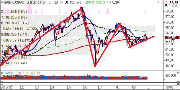 그런 의미에서 필자의 기법상 현재 소형주에서 나타나고 있는 차트의 모습이 人力의 개입이 의심되는터, 향후 소형주군의 레벨업이 의심되는 국면이다 하겠다.