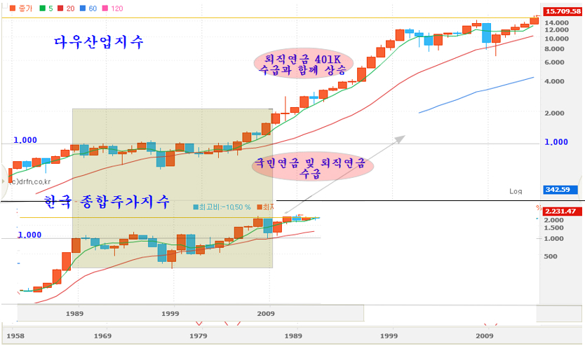 쥬라기 : 이때 미국에는 국민연금 대신 401K라는 주식을 사는 수급이 만들어집니다.