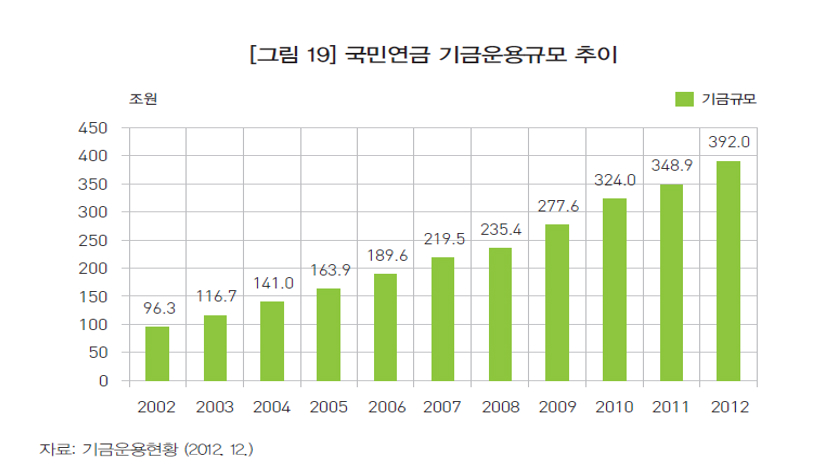 쥬라기 : 2012년말에는 기금 자산은 50조원이 늘어서 391조원이 되었고,