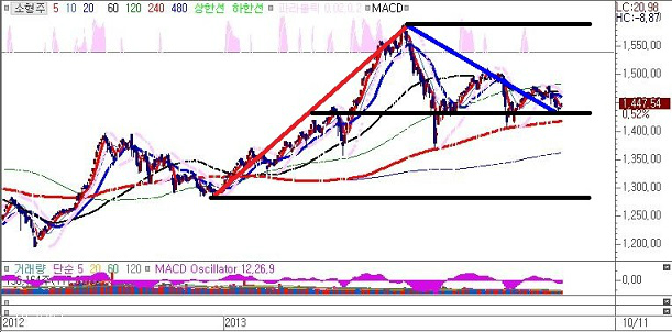 현재 중소형주의 경우 반등이 시작될 국면에있어 향후 실적등으로 인해 실적개선 중소기업이 크게 상승할 여건이 숙성되고 있으며 현재 조정이 마무리되고 있는 소형주 차트에서는 올해 실적이 개선된 기업이 상당폭 줄어들것으로 판단되는 바 실질적으로 실적이 크게 개선된 어닝서프라이즈 기업이 나타난다면 큰폭 상승할 확률이 높다 하겠다