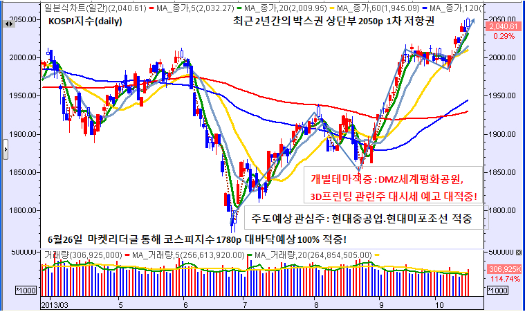 필자 역시 대형주군중에서는 현대중공업과 현대미포조선을 방송진행시 마다 유망주로 지속 체크 드린바 있지만 시세는 이들 종목들과 함께 점검드린 중소형주의 탄력에 비길것이 못된다. 3D프린팅 재료주인 TPC가 300% 상승하는 기간 동안에 현대중공업은 외국인의 집중매수와 투자자들의 관심이 집중되면서 요란?했지만 실제 상승폭은 불과 30% 상승에 그쳤기 때문이다.