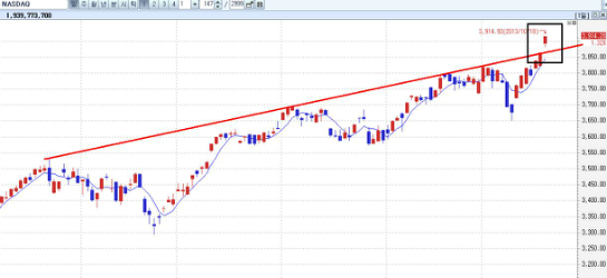 공화당과 민주당의 합의와 오바마의 서명 이후 미국 증시는 다시 고점을 갱신하고 있다. S&P 500 지수가 전고점을 넘어 다시 역사적 신고가를 기록중이다. 특히 제가 10월에 강조했던건 나스닥 지수다. 올해 역사적 신고가를 갱신했던 다우와 S&P 500 지수와 달리 나스닥 지수는 과거 2000년도의 IT버블로 형성된 5,132포인트가 역사적 고점이기 때문에 아직 역사적 신고가는 아니라고 했다.