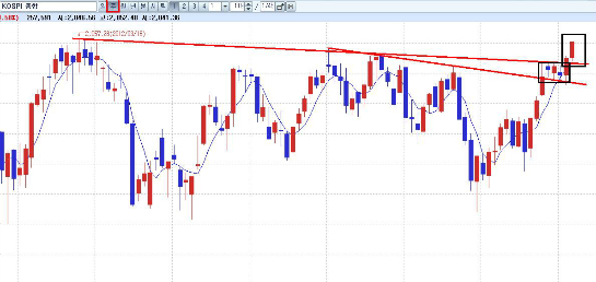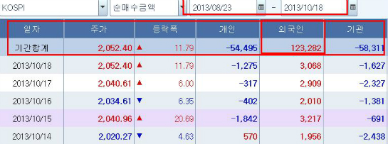 기술적 분석상 최대 매물벽을 놓고 2,000포인트 전후 등락을 보이던 지수가 추가 상승을 시도하고 있다. 단순하게만 생각해봐도 2012년 1월 이후 최대 순매수를 기록중인 외국인 수급 고려시 동 기간 지수 최고치인 2,057은 기본적으로 넘겨야 한다고 했다(10월5일 김인준대표 투자전략글 확인). 그리고 지금도 이 전망은 마찬가지다.