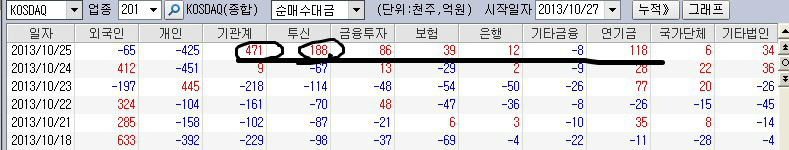 코스닥 시장에서의 기관 매수세. 특히 투신권에서의 매수전환은 물론 연속성이 있는가를 확인해 봐야 하겠지만 필자가 보는 견해로는 그냥 간과하고 넘어갈 부분은 아니라 보여진다.