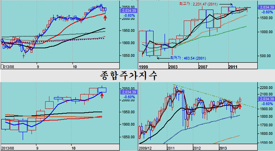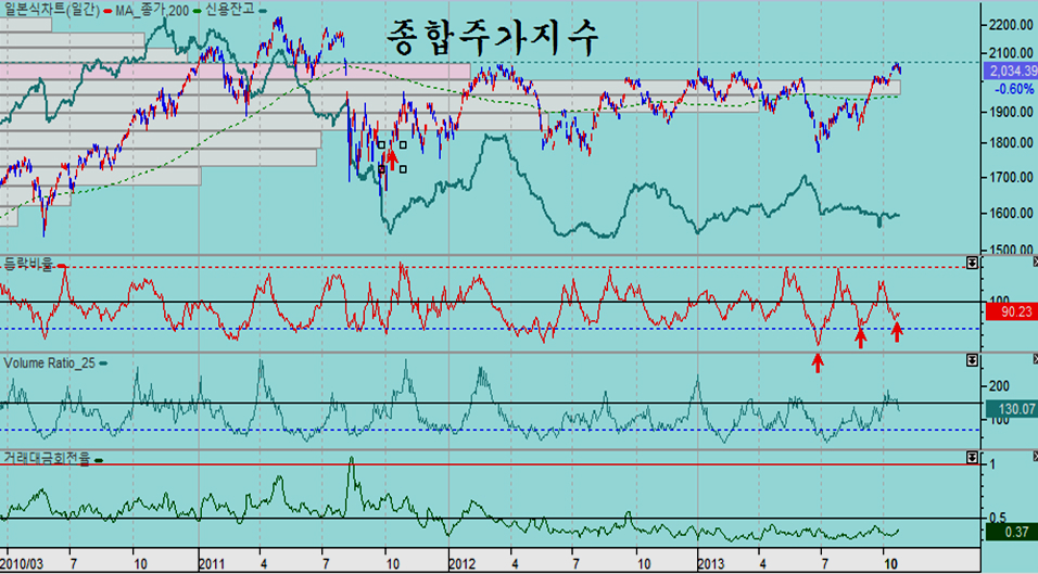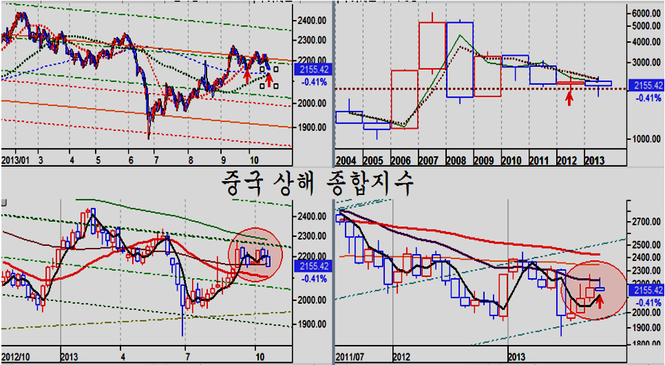 주중 중국 당국이 유동성 흡수로 은행간 금리가 급등하는 등 중국의 조정이 이어지며 아시아 및 이머징 국가 조정의 모멘텀이 되었으나, 중국 상해종합지수는 저항권 돌파를 앞두고 9월 중순 이후 이어진 하락 채널을 형성하며 조정이 이어졌으나, 이번 조정과 함께 20일 평균의 채널 하단에 접하면서 상승이 준비되고 있다.