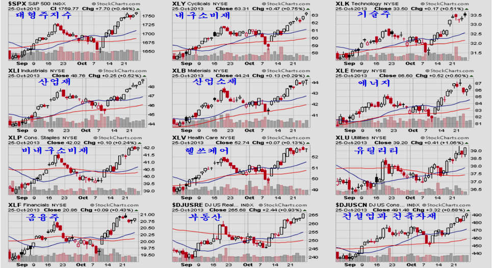 이런 장기 경기의 흐름을 아는 글로벌 선도세력은 미국 시장에서 이와 관련된 산업소재 관련 업종의 매수를 늘리며 기초재료나 기초소재, 산업용 금속 등 향후 경기가 회복되면 수요 증가와 함께 가격이 오르는 업종의 매수에 여념이 없는 듯 하반기 들어 주가의 상승세가 가파르다.