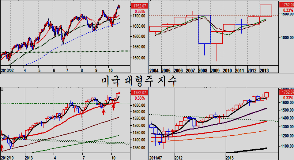 미국이나 유럽 등 선진국 증시는 지난주에도 상승 추세가 계속 이어졌다. 이런 저런 악재가 계속되고 있음에도 이와 별 상관이 없이, 미국과 유럽을 대표하는 독일 증시는 일봉과 월봉의 정배열의 견실한 상승 추세 국면이 계속되고 있다.