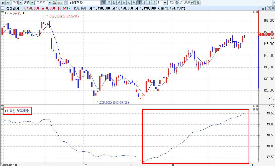 여기에서 우리는 한가지를 포착할 수가 있어야 한다. 조선주가 주도하던 흐름 이후 조선주가 되반등하든 그렇지않고 기간조정에 들어간다고 해도 절대 지수는 밀리거나 꺽일 수 없다는 점이다. 그 이유는 삼성전자 때문이다. 삼성전자에 대한 외국인의 배당 매수가 본격화된게 보이지 않는가? 오늘로 벌써 24거래일 연속 삼성전자 순매수다. 삼성전자는 올해 사상 최대 실적이다. 감이 오지 않는가? 지수의 속조조절은 있어도 꺽임은 없다는걸 명심하자.