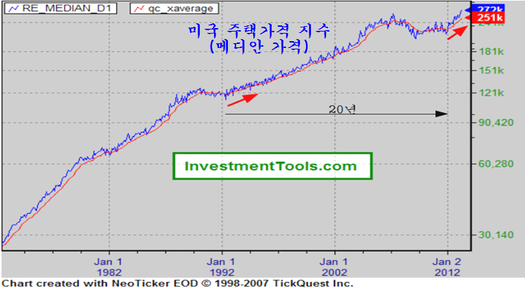 앞으로 이 주택가격이 얼마나 상승하게 될까? 이를 알기 위해 과거의 주택가격 통계를 참고하면 지난 상승 시기는 1992년부터 시작된 주택가격 상승이 2006년까지 14년에 걸쳐 계속되었다. 사실, 미국의 주택가격 변동은 과거 150년에 걸쳐 대략 17년을 주기로 움직인다. 이런 점에서 주택가격 상승과 함께 건설 경기 회복국면은 앞으로 매우 오랜 시간에 걸쳐 진행된다고 할 수 있다.