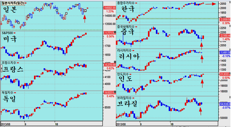 미국과 유럽 증시가 견실한 추세를 이어나가는 가운데 10월 조정을 거쳤던 중국 일본 한국 등 아시아와 인도, 러시아, 브라질 등 주요 이머징 국가가 11월을 맞으면서 새로운 상승을 분비하고 있다.