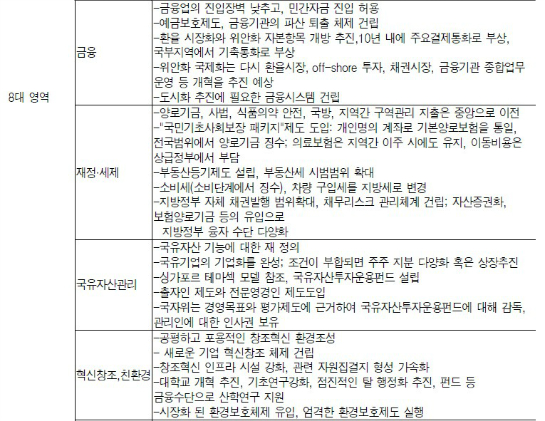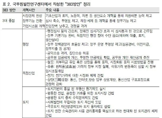 5. 중국은 11월 9일 3중전회(중국공산당 제18기 당중앙위원회 제3차 전체회의)의 개막을 앞두고 중국성장엔진의 부재, 생산비용의 증가대비 생산성 감소, 이로 인한 수출 경쟁력 약화에 초점을 두고 경기부양보다는 지속 성장을 위한 혁신주도형 개혁과 구조조정에 방점을 두고 있다. 이는 국무원발전연구센터가 3중전회에 제출한 “383보고서”내용을 살펴보면 “정부기능축소와 시장 기능 강화, 민생정책”이 강조 되었다는 점에서 정부의 개혁의지는 중국사회의 긍정적인 변화를 줄 것이라 기대된다. 하지만 2014년 성장률을 7.0%로 낮출 수 있다는 우려감이 투자심리에 부정적인 요소로 작용하고 있지만 일부에서는 중국이 행정, 기초산업, 금융, 세제, 녹색성장 등 8개 개혁을 시도하게 되면 국내 경제에 호재로 작용할 것이라고 해석하고 있다. 실질적인 개혁실행은 이르면 12월 말로 예정된 “중앙경제공작회의”이후가 될 것으로 예상된다.